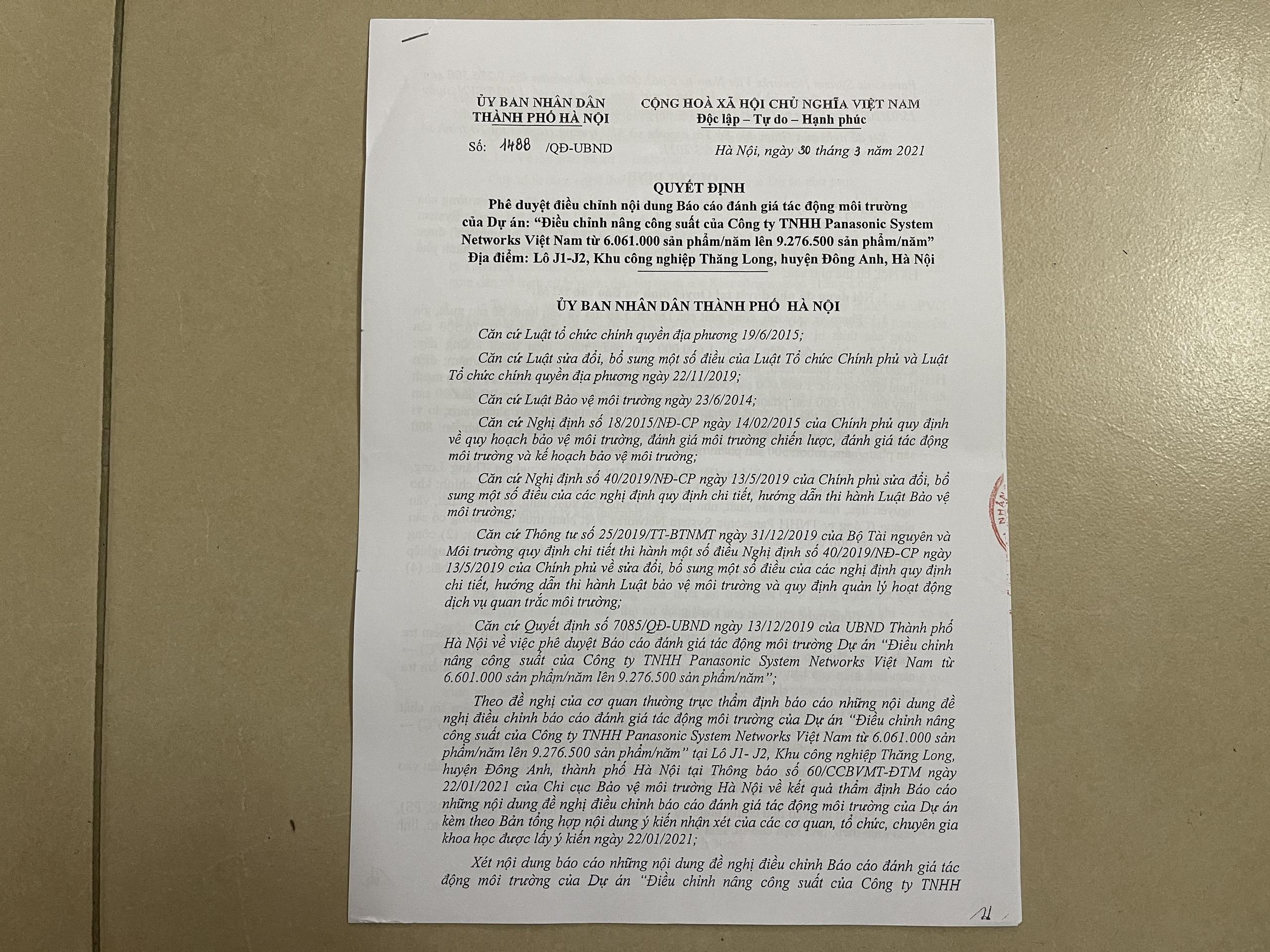 Quyết định phê duyệt báo cáo đánh giá tác động...
